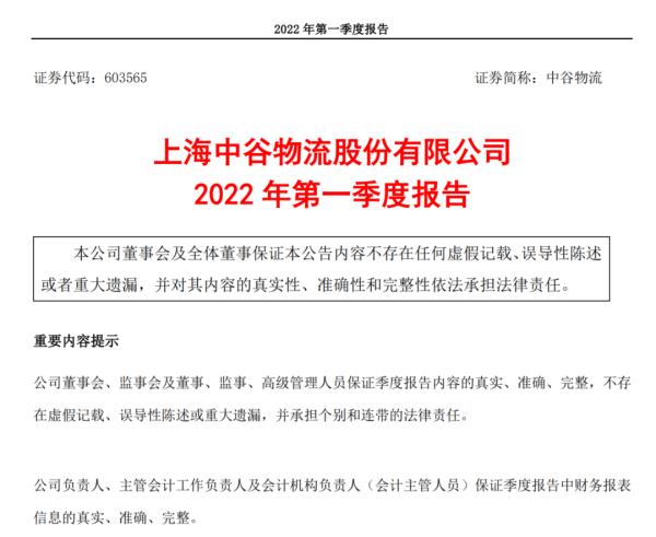 中谷物流:第一季度净利润6.24亿元 同比增长170.23%
